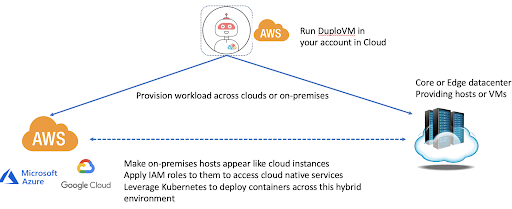 So far, we have talked about DevOps in public cloud environments. However, there are many cases where part of the workload needs to run on the edge. These deployments also need to be monitored, managed and upgraded. DuploCloud allows application provisioning across cloud and edge servers. It even allows edge servers to appear like cloud instances in terms of network access and IAM based roles so that workloads running there can directly access cloud services like S3, DynamoDB and others.