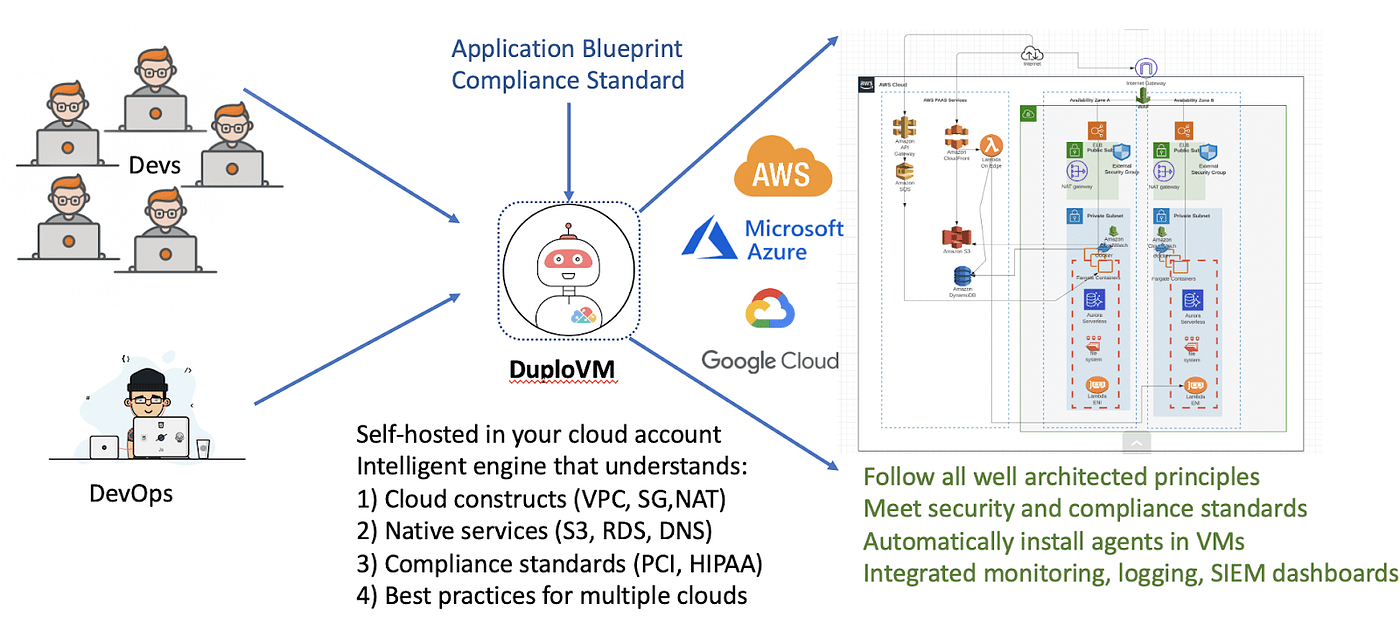 At DuploCloud, we have built a DevOps Automation Platform that understands most of the cloud constructs and can be trained to pick up more in just a matter of 1–2 days. The bot also understands all the compliance standards and well architected principles. This bot is typically similar to a highly trained DevOps engineer with expertise in application deployment, infrastructure provisioning, security controls, compliance and tools.
