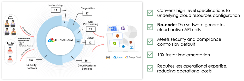 DuploCloud is a software platform that essentially takes three high level inputs: