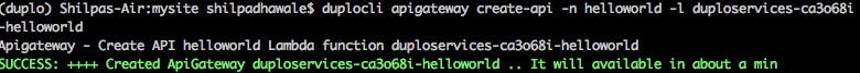 > duplocli apigateway create-api -n helloworld -l duploservices-ca3o68i-helloworld