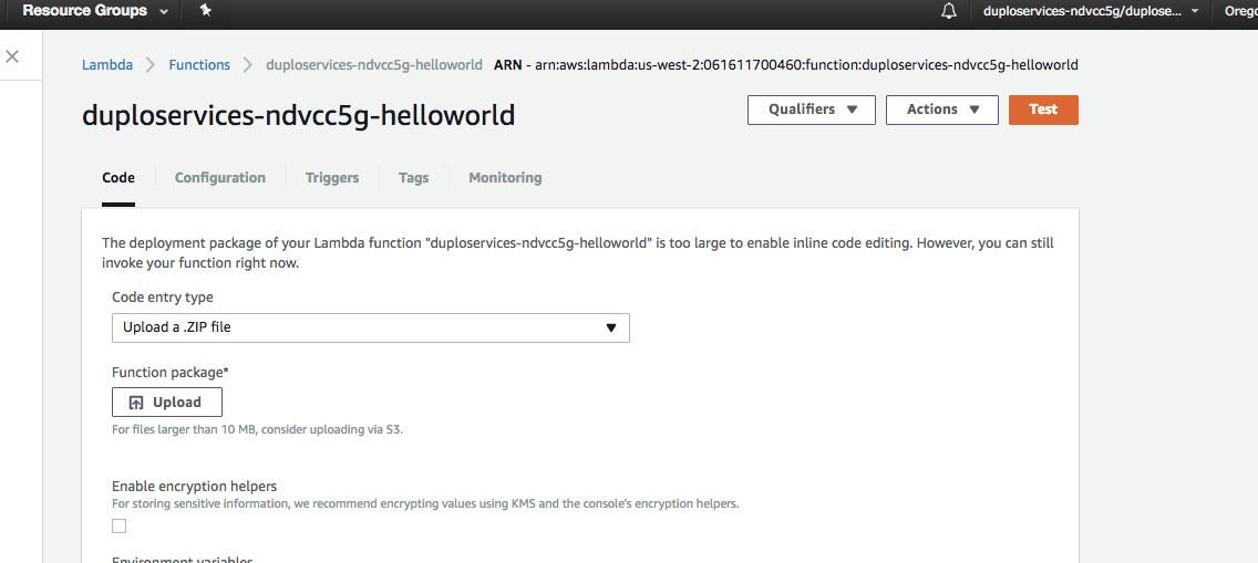 > duplocli lambdaa create-function -n helloworld -c duplo_compose.json -p <zipfilepath>