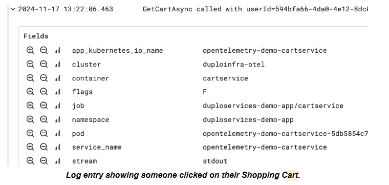 This is a log entry showing that a visitor to the website clicked on their shopping cart: