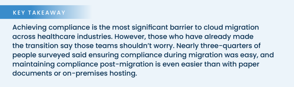 Organizations that have made the jump want to dispel these fears. Of those who have already migrated, 71% said ensuring compliance during and after the migration was easy.