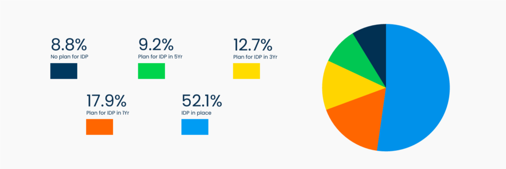 - When restricting the cohort of respondents with no plans to implement an IDP to just engineers, they become some of the most senior of those surveyed. 60% of engineers have six or more years of experience.