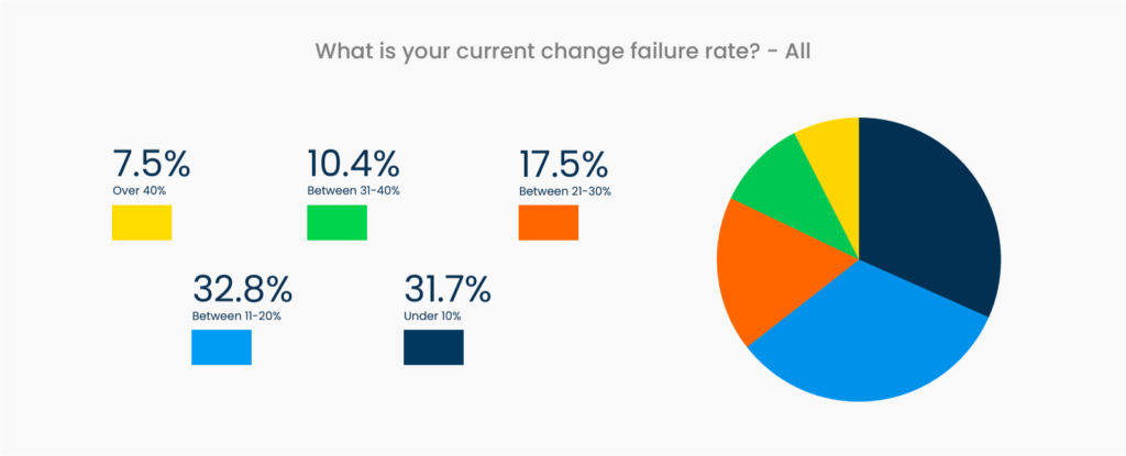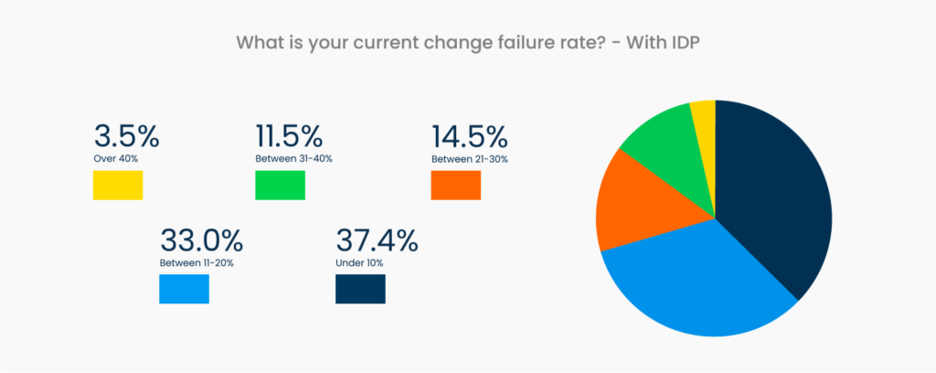 However, teams using a platform engineering framework see more optimal failure rates. 70.48% of developers currently using an IDP cite failure rates under 20%.