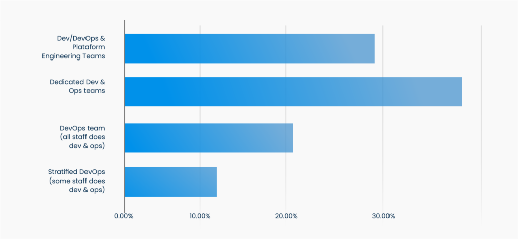 In reality, most organizations currently utilize dedicated dev and ops teams at 37.5%.