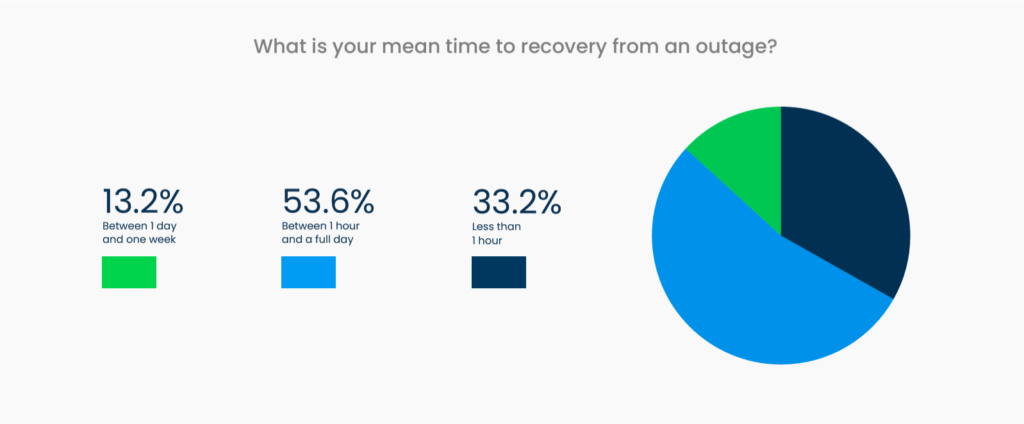 All frameworks are generally good at recovery. 53.6% of developers report that their mean time to recovery (MTTR) is between an hour to a full day.