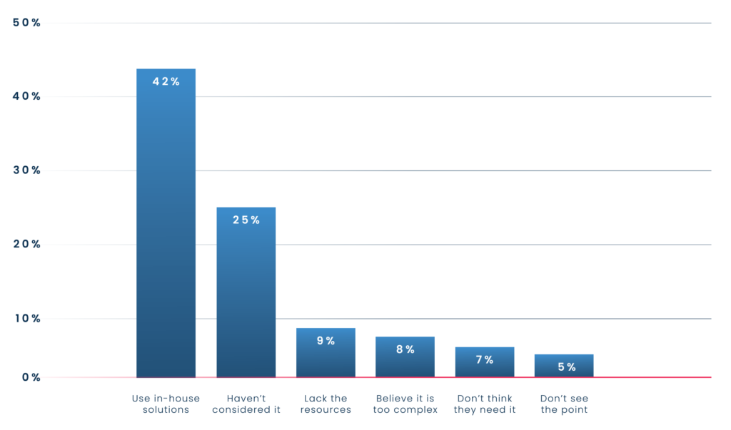 - 42% of companies that have not adopted these platforms said it was because they already had dedicated in-house resources — the number one reason by far.