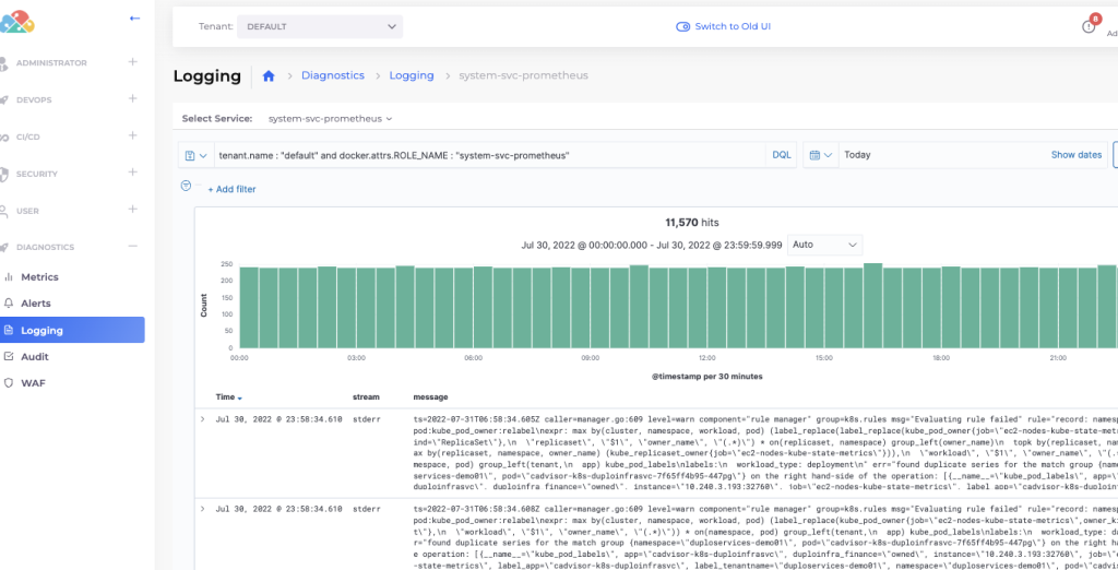 There are 4 key diagnostics functions leveraged by DuploCloud users: