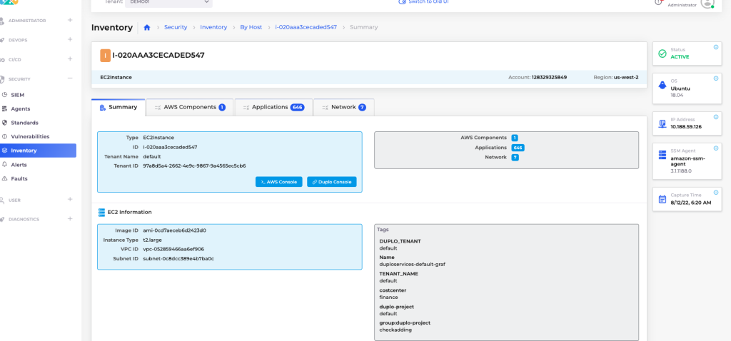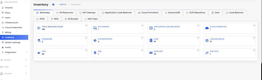 Inventory management is a key element of security and cost management, as well as a compliance need. The DuploCloud platform manages inventory at three levels: