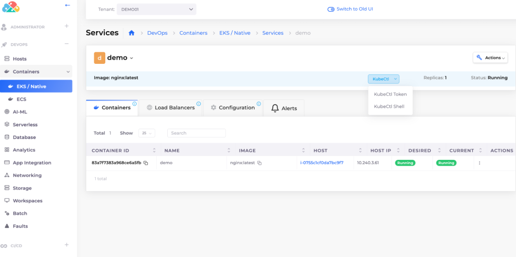 DuploCloud provides a catalog of all the resources in an application-centric view as well as a flat cloud service view.