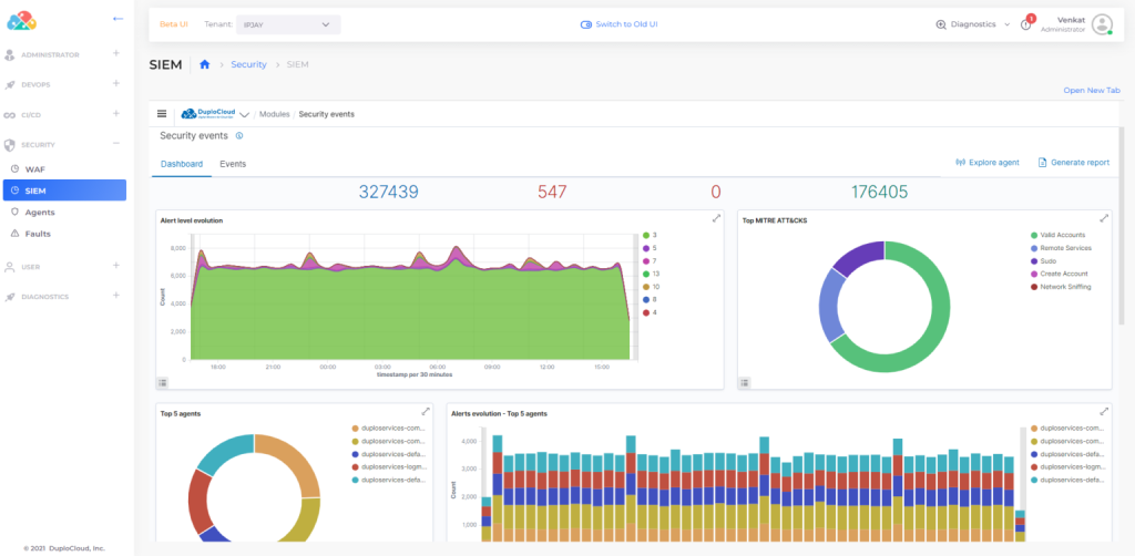 SIEM is a centralized system that aggregates and processes all events. DuploCloud uses open-source Wazuh as a SIEM and this is orchestrated and integrated into the workflows. The primary functions of the system are: