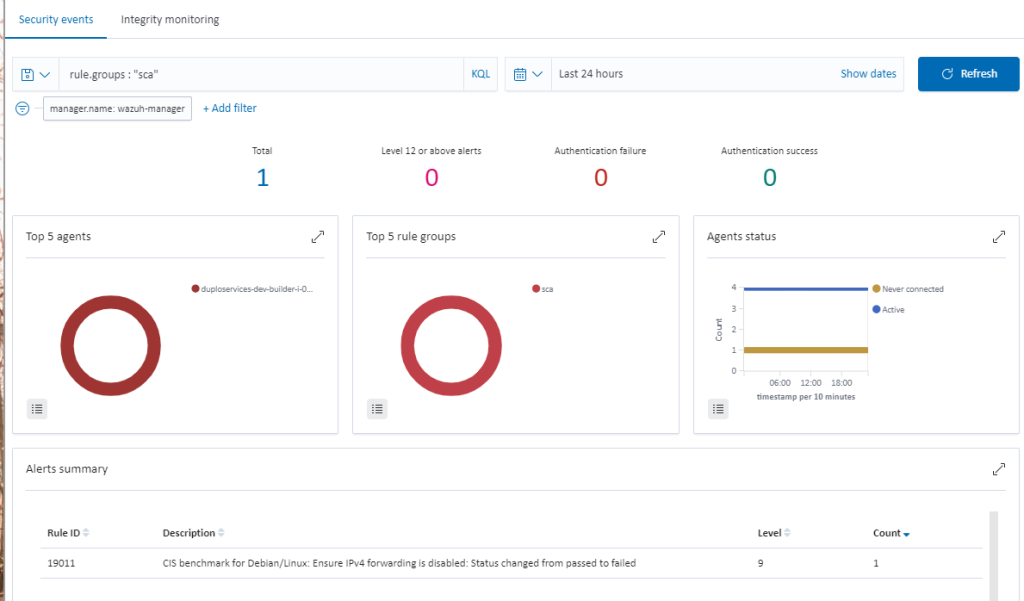 The strength of an SIEM is fundamentally judged by two factors: Rules set and Data parser. Together these determine the amount of coverage. Wazuh is a fantastic SIEM with the most elaborate coverage. Any required security functionality has its ruleset in Wazuh, be it FIM, CVE, Virus Scanning or CloudTrail. At the same time, the Wazuh platform is extensible, open source and has over 1.5K GitHub stars and 369 GitHub forks. Subsequent sections describe the location of various core modules of our SOC 2 implementation in the Wazuh dashboard.