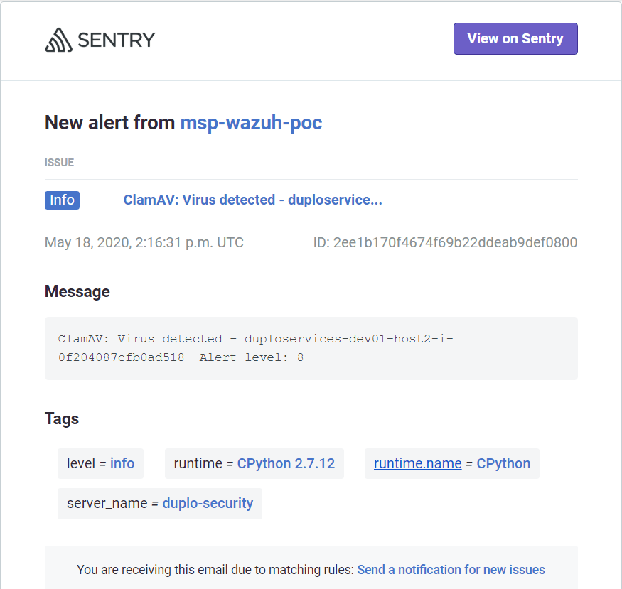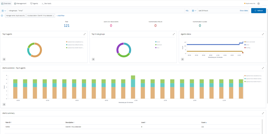 5Scans Information Assets from Outside the Entity for Malware and Other Unauthorized Software—Procedures are in place to scan information assets that have been transferred or returned to the entity’s custody for malware and other unauthorized software and to remove any items detected prior to its implementation on the network. DuploCloud enables ClamAV deployment via agent modules and alerts are collected in Wazuh.
