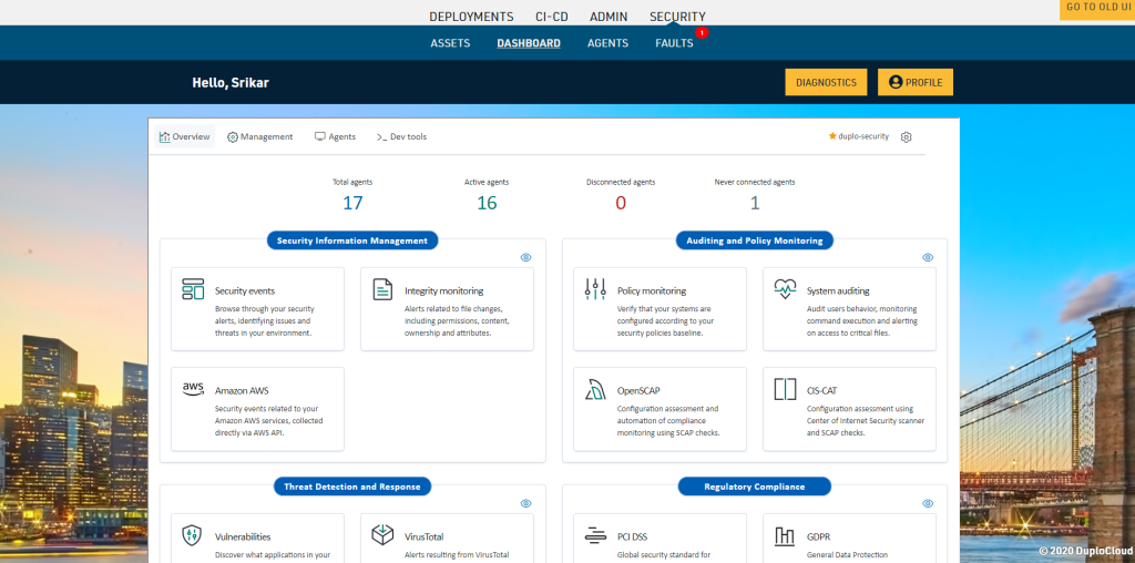 Post provisioning, DuploCloud orchestrates third party open source and cloud provider monitoring solutions to validate the security and compliance posture as well as detect drift in desired state and alert. Using third party tools thus provides an independent attestation of the earlier described provisioning system. Following are these set of features