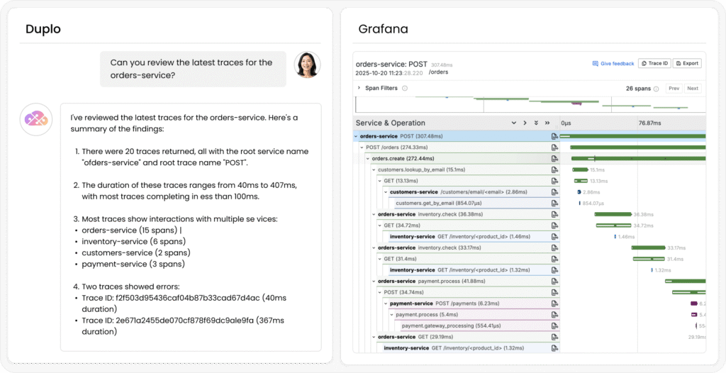 Duplo AI operates like expert DevOps engineers, always in sync with your infrastructure, context, and tools.